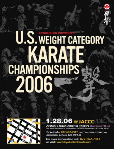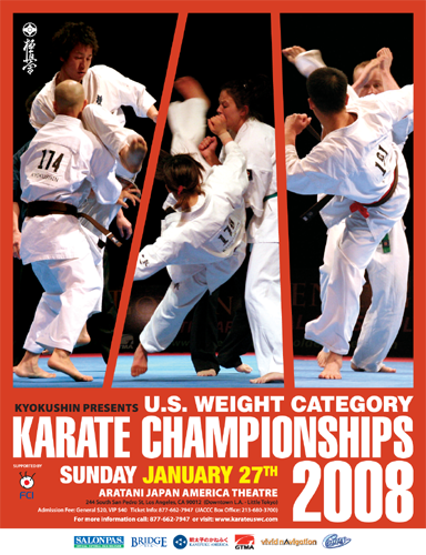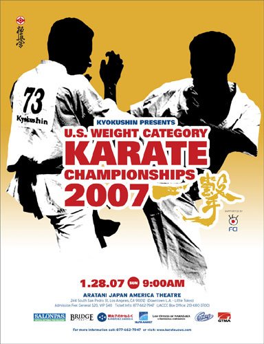 On Sunday, January 28, 2007, the IKO Kyokushinkaikan held the annual national knockdown karate championship, the US Weight Category Karate Championships, in Los Angeles, California. Over 100 competitors, coaches, officials and students were in attendance before a fervent crowd of nearly 500 in the aptly-named Japan-America Theater in Little Tokyo, downtown Los Angeles.