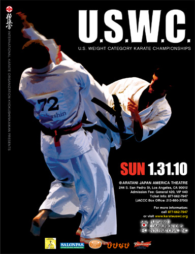 On Sunday, January 31, 2010, IKO Kyokushinkaikan hosted its annual knockdown tournament, The US Weight Category Karate Championships, in Los Angeles, California. For the 6th consecutive year, Los Angeles welcomed over 111 competitors from around the world, including Europe, Asia, and North America. The event was once again held at the Japan America Theater in Little Tokyo and welcomed over 1,000 spectators to witness competitors challenge themselves and others in this formidable pursuit of the Kyokushin spirit.