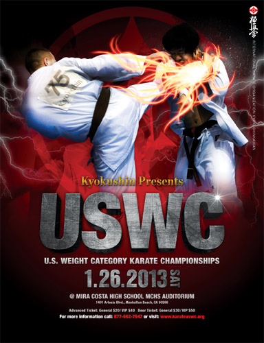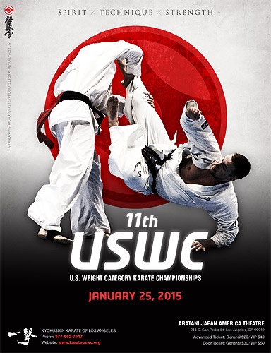 The U.S. Weight Category Karate Championships were held on January 25, 2015 at the Aratani Japan America Theatre in Los Angeles, CA, USA. Sanctioned by the IKO Kyokushinkaikan, Tokyo, Japan, and hosted locally by Shihan Taku Nakasaka and Kyokushin Los Angeles members, the 2015 USWC was especially significant because the top finishers would have the honor of being selected to represent the North American Region at the 11th World Open Karate Championship in Tokyo, Japan, November 2015.