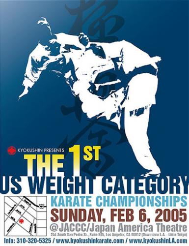 On Sunday, February 6, 2005, the IKO Kyokushinkaikan presented the 1st U.S. Weight Category Karate Championships here in Los Angeles, California. Over one hundred competitors, coaches, IKO officials, and over a thousand spectators were in attendance.